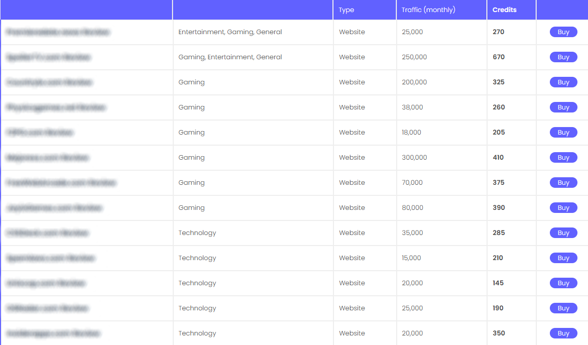 Pubki works with a credit system to purchase reviews, newsletter inclusion, and cost-per-click interest.